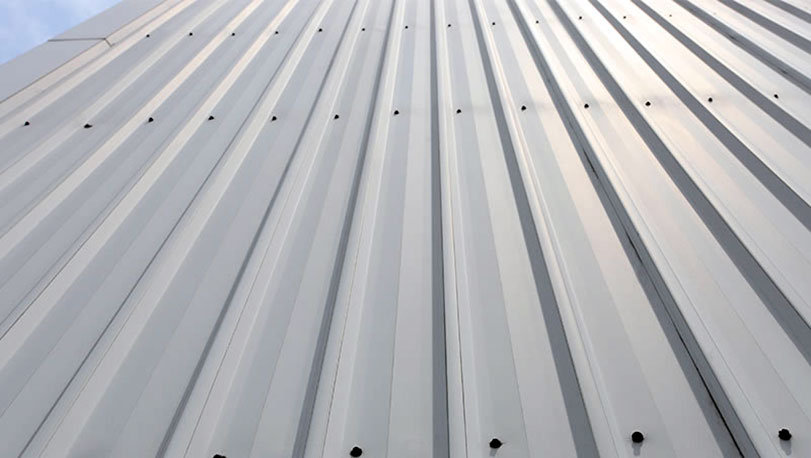 1997年擴(kuò)建過(guò)程中,使用寶鋼雪白PE聚酯彩涂?;鍨?80克/平方米的熱鍍鋅,牌號(hào)為T(mén)St01。使用14年后,涂層顏色依然鮮艷。