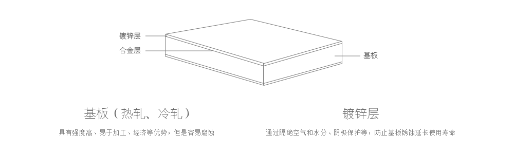 產品特點 ·比普通冷軋板具有更好的耐腐蝕性,使用壽命長; ·良好的密著性和焊接性; ·多種表面可選:大鋅花、小鋅花、無花; ·多種表面處理,可做鈍化、涂油、光整、環保等; |